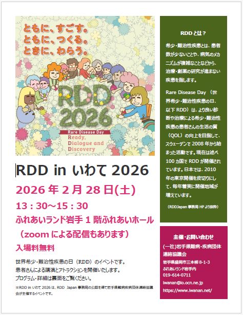 ※RDD in いわて2026は、RDD Japan事務局の公認を得て一般社団法人 岩手県難病・疾病団体連絡協議会が主催するイベントです。