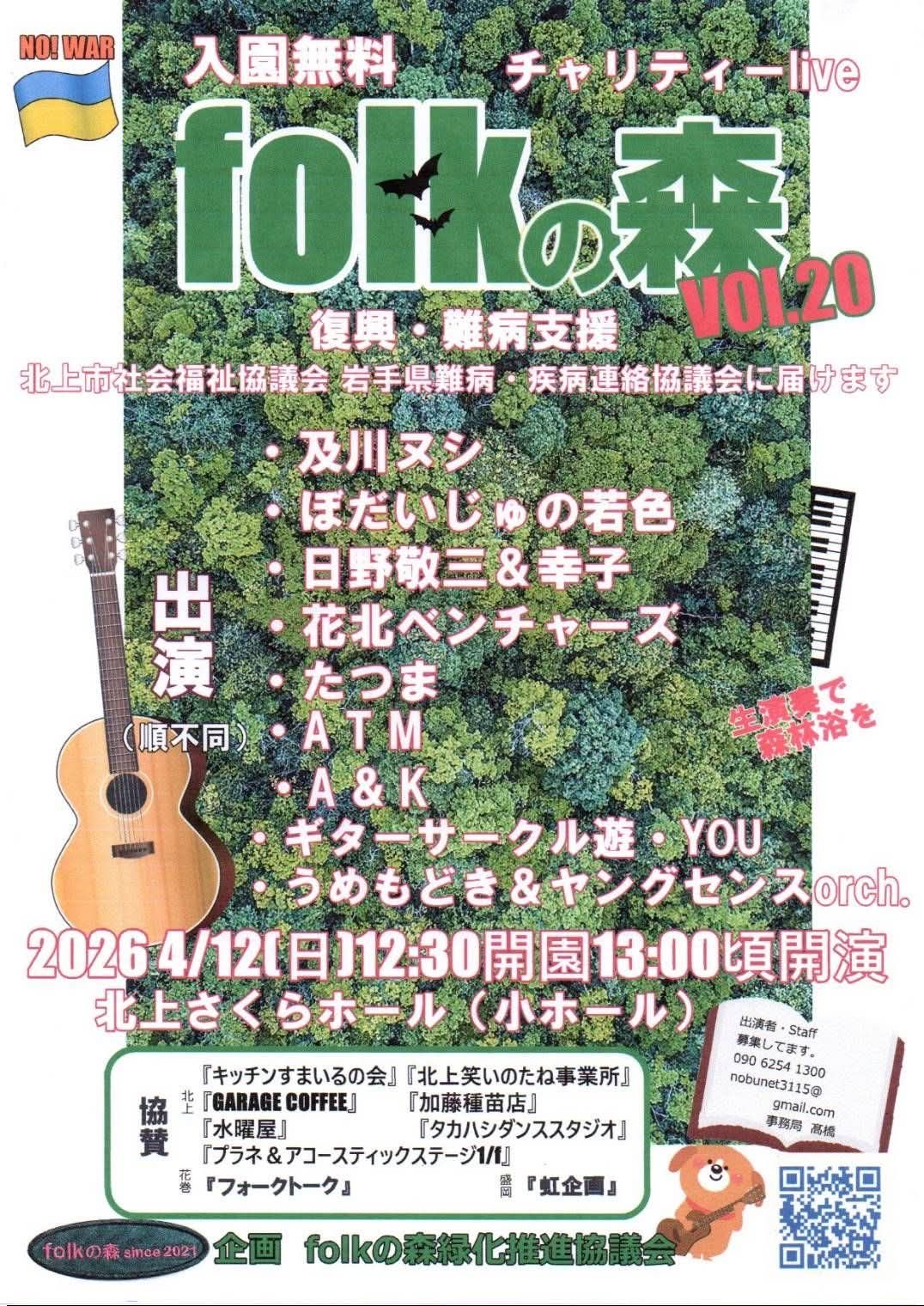 - ◎ チャリティーlive folkの森Vol.20復興・難病支援が開催されますNEW
