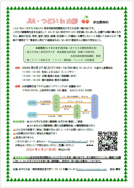 主催:あすなろ会(JIA:若年性特発性関節炎の子どもを持つ親の会)