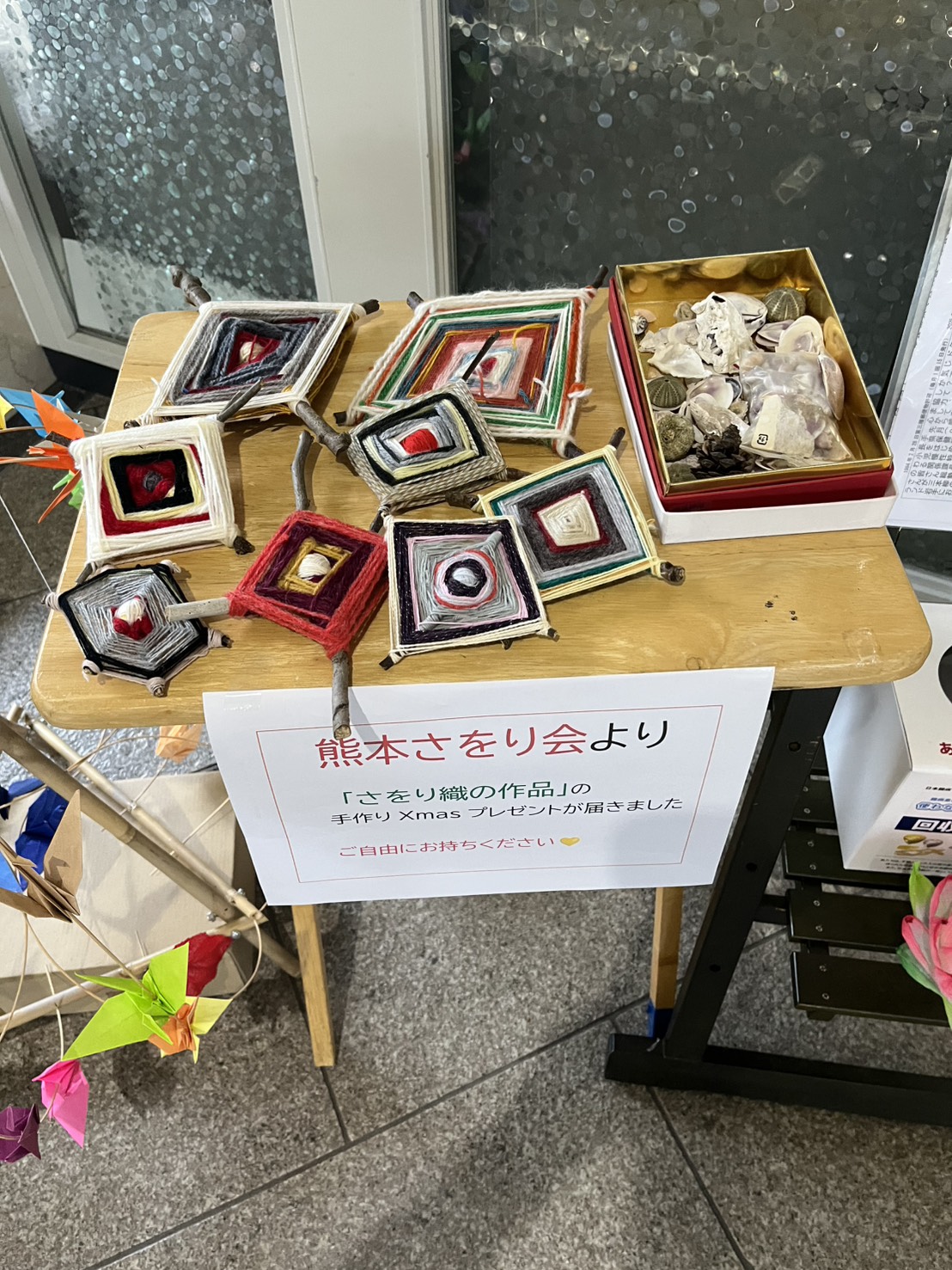 - 熊本さをり会より、さをり織りの作品のクリスマスプレゼントをいただきました。