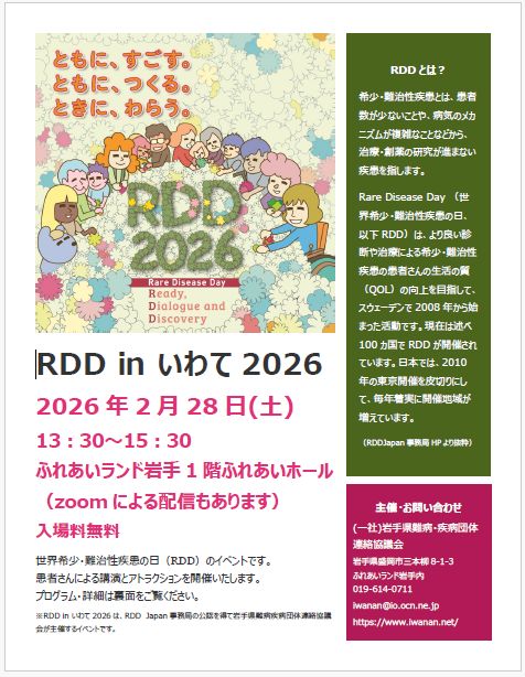 ※RDD in いわて2026は、RDD Japan事務局の公認を得て一般社団法人 岩手県難病・疾病団体連絡協議会が主催するイベントです。